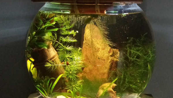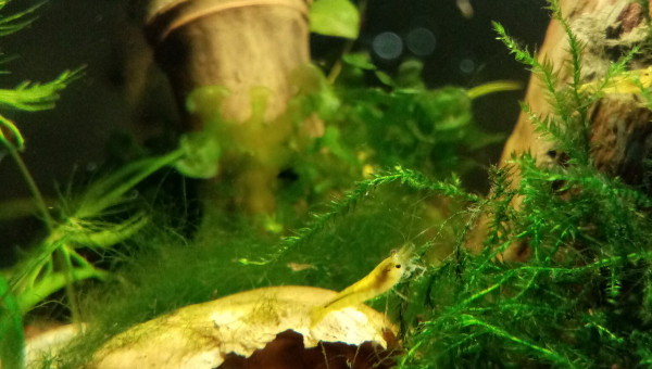 Petit aquarium mis en place pour récupérer les crevettes juvéniles dans le filtre externe. Je les remet dans le 100l quand elles sont un peu plus grosses.
