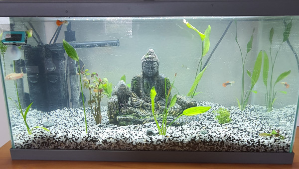 Voilà mon aquarium avec les poisson puis avec de jolies plantes puis j'ai mis des escargot neritina. j'ai des poissons des guppy 2 laveur de vitre puis 1 nettoyeur de fond voilà dite moi se que vous en pensez