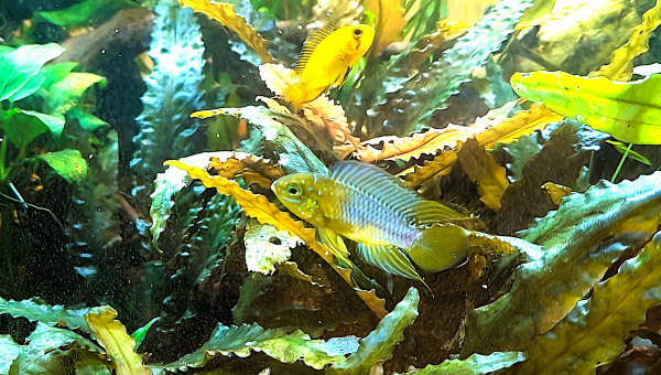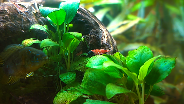 il s'agit d'un aquarium spécifique d'une soixantaine de litre dans lequel se trouve un couple d'apistogramma borelli ainsi que deux faunus ater. au bout de 8 mois je me suis permet de rajouter 4 crevette red cherry. j'ai bien surveillé au debut qu'elles ne se faisait pas attaquer par mon couple et il n'y a aucun problème. aujourd'hui elle sont une petite quinzaine.