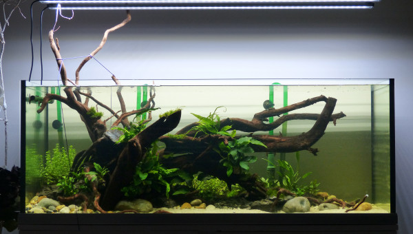 Remplacement de sol par du sable Ajout Anubias Barteri nana « petite », Barteri nana « golden heart », Barteri var. coffeifolia, Barteri var. Galbraith (minima), Microsorum pteropus 'Short Narrow Leaf, Microsorum pteropus 'Trident, Microsorum pteropus 'Petit, Cryptocoryne albida 'Brown