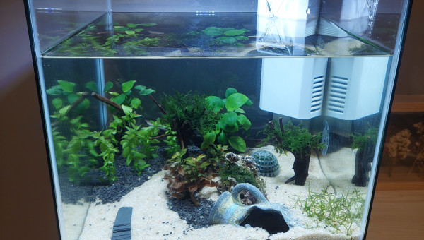 Bonjour je vous présente mon superfish 30l led pro. J'ai essayé de réaliser un aquascape originale avec une petite caverne dans l'amphore et un sol deux couleurs, sable fin de filtration de piscine et manado black pour planter , en dessous il ya une couche de 2cm de graviers d'un vieux aquarium qui sont remplis de bonne bacterie. Je trouve en général les décors artificiel horrible, mais je voulais absolument avoir une grotte avec un puits de lumière, j'ai tester et finalement je trouve que ça rend pas trop mal à voir si les future crevettes si plaise . Pour la plantations j'ai mis trois racine, une avec une petite anubia et les deux autres avec de la Christmas mousse imitation arbre en plantant la racine à l'envers. Dans le fond j'ai mis cinq pied de bacopa, une branche avec une grosse anubia et trois pieds de ludwigia . Je compte rajouter des plantes devant mon filtre mais j'hésite encore. Et je test une boule en plastique remplie de bille d'argile pour faire pousser les mousses, dernière petite folie j'ai essayer de planter des petit morceaux de Christmas mousse en mode gazon . Les photos ne sont pas très jolies car je vien de jardiner mais je les mets à jour régulièrement. N'hésitez pas si vous avez des conseils ou des questions .