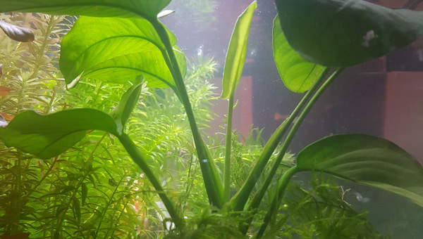 Les anubias me font chacunes plein de feuilles sans arrêt depuis le début de l'été... Le retrait des des plantes flottantes du dessus de ma grosse anubia y'a environ un mois a engendré l'apparition d'encroutante verte sur les feuilles qui étaient alors les plus exposées à la led. Faut dire que les Pixis avaient aussi grignottés celles là au moment de leur sortie... elles sont pas gâtées. C'était en train de régresser jusqu'à la cannicule... avec le système venturi h24 pendant plusieurs jours de suite mes feuilles fragiles d'anubia ont vu un retour d'algue à barbe. Forcément... manque de co2 avec tout ce brassage et bullage. :p Quelques brins de corne de cerfs on fait leur apparition sur le haut des plus grandes feuilles de mon echinodorus... j'ai donc décidé de passer au bulleur de nuit depuis hier. Plutôt que le venturi qui chez moi degaze trop de co2. :) J'ai déjà eu ce type d'algues après avoir tué mon équilibre bactérien et mis le brassage en mode fontaine en février. Depuis... tout avait disparu. Je songe quand même à retirer une ou deux feuilles de l'anubia pour éviter trop de propagation parce qu'il va faire chaud encore un moment... Je pense aussi couper un peu le tour d'une ou deux feuilles de l'echinodorus là ou la corne de cerf s'est mise. Si ça empire, je sortirai l'anubia pour la traiter en partie (les feuilles atteintes) dans une solution à base d'eau oxygenée. Le reste du bac semble être comme à son habitude. :)