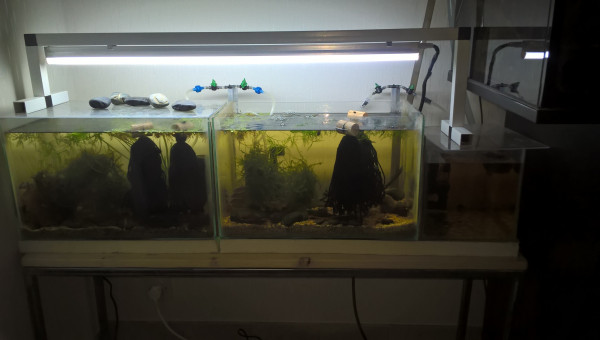 Table élevage de killis, 2 bacs de 20 l et 1 de 15 l pour le grossissement