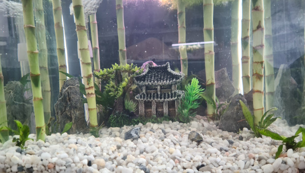 Après l'explosion de Pearl Bowl suite à un choc, une mésaventure relatée dans les discussions fishfish, j'ai installé un aquarium que j'avais en projet depuis un certain temps. Il s'agit d'un Urbyss Q4 de 50l en hauteur. Je continue à utiliser de la filtration sous gravier qui reste le système que je préfère pour de nombreuses raisons : moteur non immergé, entretien nul, débit et courant faibles, excellente oxygénation du bac. Il fait le bonheur de mes crevettes, il fera prochainement celui du Betta Splendens qui devrait occuper les lieux. Comme son prédécesseur cet aquarium possède une couche de substrat Trèeeeeeeees épaisse, en sacs de pouzzolane recouvert de gravier blanc ( Amtra). Et donnant directement sur une fenêtre il n'est éclairé que par la lumière naturelle. Plantes : fougère de java + lucky bambou.