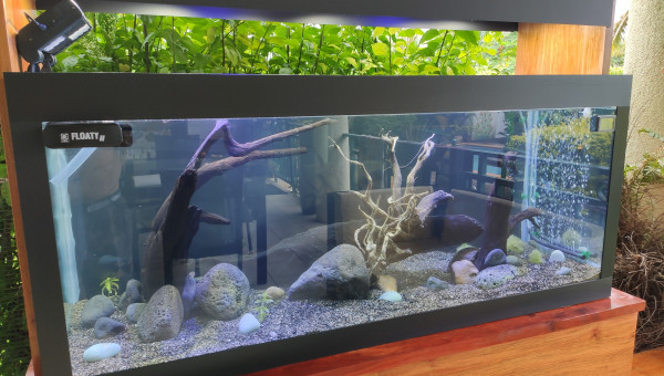 Aquarium fabrication maison (collage, montage sur socle commandé a un menuisier, masquage des joints, etc... ). Fier de ma réalisation ! ????