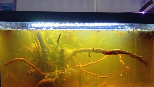 Voilà mon premier projet de biotop type black water eau douce type asiatique pour accueillir mon futur beta splendens et sans doute des corydoras albinos : Il y a déjà une anubia nana Une bucefalandra scorpion Une cryptocoryne brune et une echinodorus mini J'attends de recevoir mes lentilles d'eau pleine de planorbe ? L'eau est vraiment trouble aujourd'hui mais j'ai hâte que le pique de nitrites s'estompe pour pouvoir apprécier la couleur des plantes???