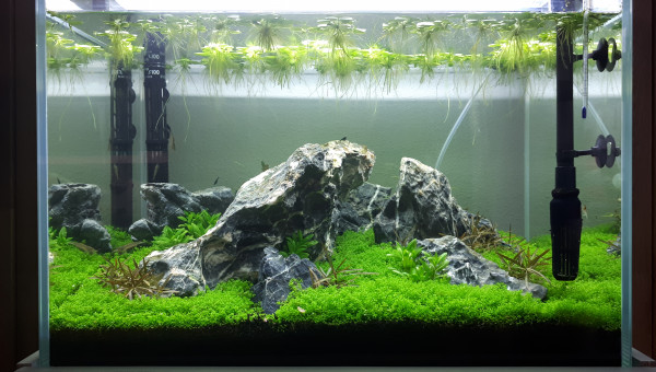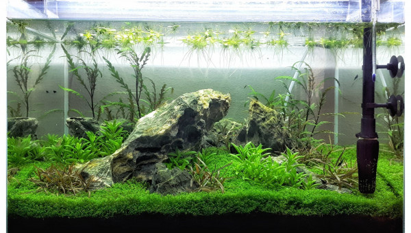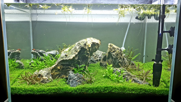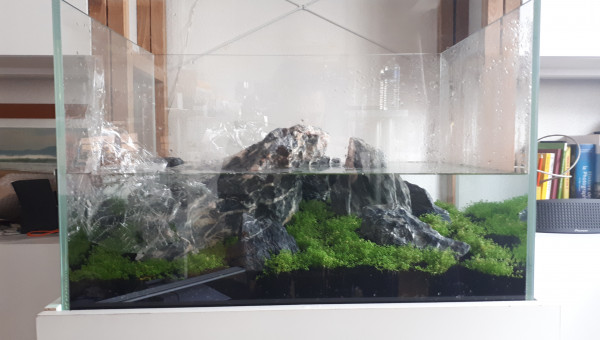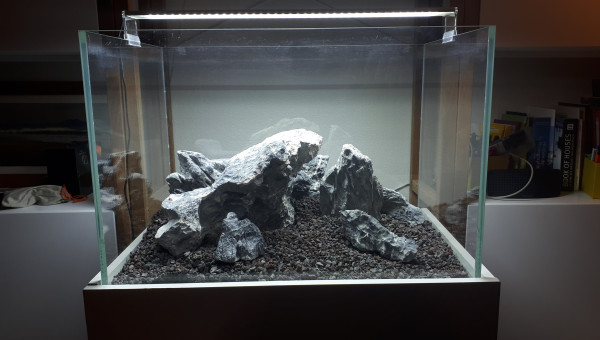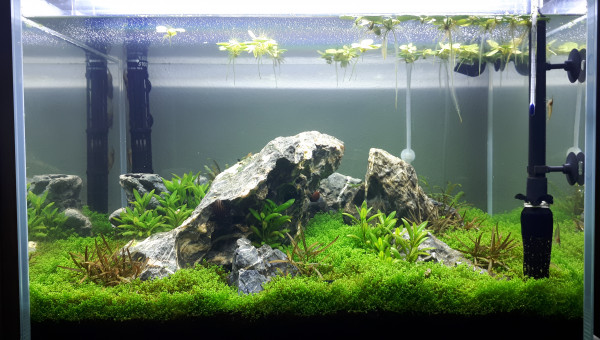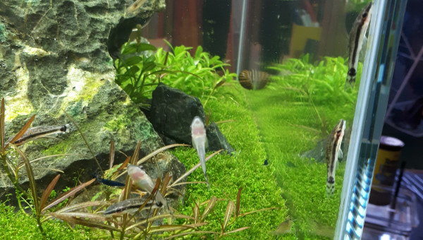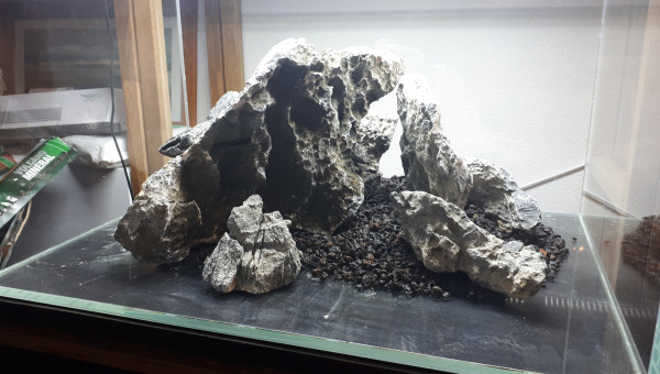 Après quasiment 2 mois de confinement loin de chez nous, nous avons retrouver le bac en très mauvais état. Il ne restait pas beaucoup d'eau, quasiment toutes les plantes étaient mortes mais par chance les poissons et crevettes étaient tjs vivants. Nous les avons très vite installés dans un autre bac afin de leur offrir un environnement plus agréable. Nous pensions depuis quelques temps à changer le décor du bac, je crois que c'est le moment! Affaire à suivre! ;)