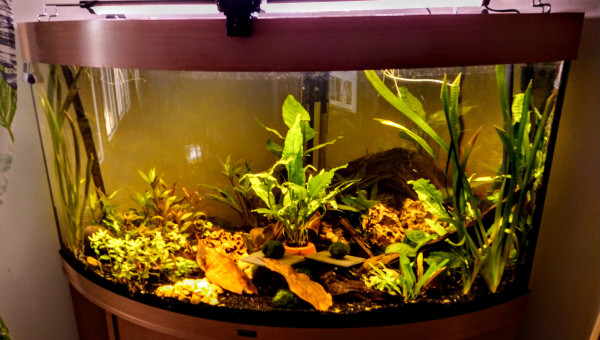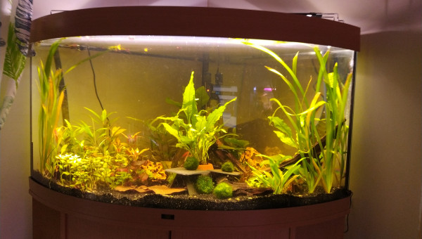 Bonjour , C'est un aquarium de type angle de la marque Juwel ( modèle Trigon 350 ) , j'ai souhaité le faire le plus naturel possible en essayant de reproduire le cours lent d'un bras de l'amazone .pour cela j'ai opté pour une filtration sur tourbe et j'ai également introduit des feuilles de catttapa et fruits d'aulnes pour acidifié mon eau et pour lui donner cette couleur ambrée qu'on retrouve dans les biotopes amazonien .