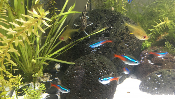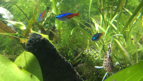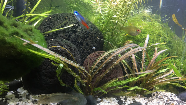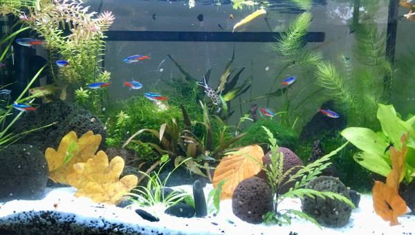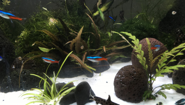 New landscape, sable blanc , rochers volcaniques et feuilles d‘automnes pour les crevettes ????