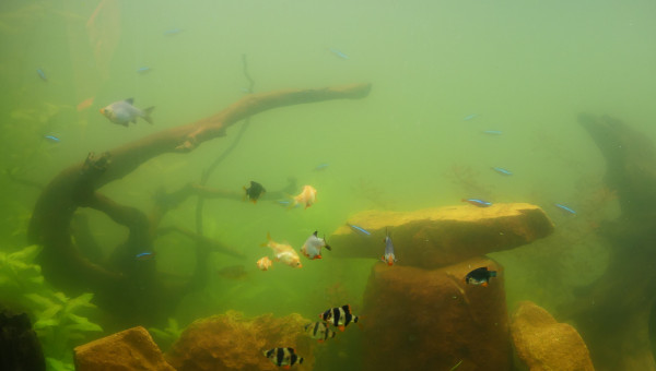 * 2002-07 : mise en eau sans problème, contrôles réguliers de l'eau - visiblement, très douce ici - * 2002-08 : installation plante et introduction des premiers poissons - quelques algues filamenteuses à l'arrivée des néons, pb très vite réglé par 2-3 petites séances de nettoyage mécanique Alimentation : pastilles de fond pour les plécos (mais largement attaquées par les barbus) et qq granules XS pour les néons + culture nauplies d'artémia [donc soit les nauplies si elles sont prêtes ; soit les pastilles et granules - * 2022-09: quelques problèmes d'algues (en suspension, eau verte) sans doute due à une augmentation trop rapide du temps de lumière et à un peu trop d'alimentation lors de l'introduction des barbus --> temps d'allumage réduit à 6h30 et alimentation revue à la baisse (en moyenne 3 fois pour 4 jours) - Quelques changements d'eau plus importants, mais sans avoir recours à des changements trop massifs pour ne pas trop bouleverser non plus l'écosystème en train de se mettre en place - Prochaine introduction prévue, les silures de verre --> lorsque le pb des algues sera réglé + bon développement des plantes pour qu'ils puissent se cacher -