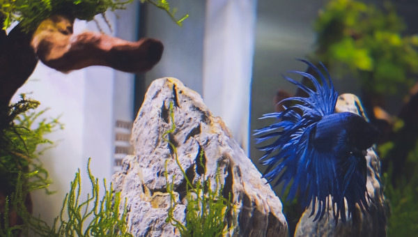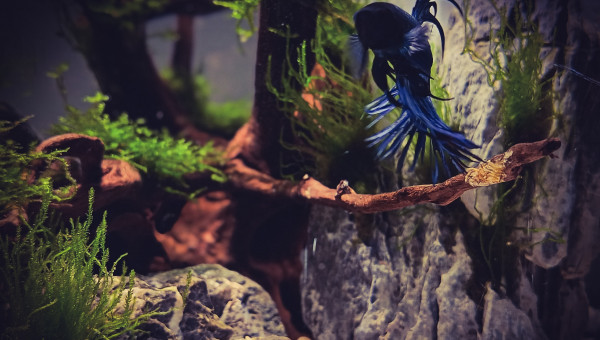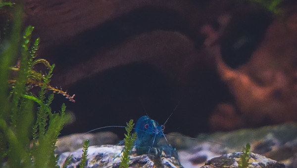Betta splendens crowntail Blue mâle, crevettes blue Velvet