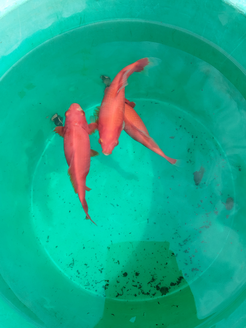 Poissons de bassin: - 3 poissons rouges (Carassius auratus) adultes de 15 cm environ -1 Carpe Koï Européennes (Cyprinus rubrofuscus "koi"), de 30 cm environ. -4 nénuphars roses (Age 15 ans) avec rhizomes très développés -Système de filtration ( 1 filtre à pression Pontec + un de rechange et pompe Pontec 2500l/h) Tous les poissons sont en excellente santé ainsi que les nénuphars. Uniquement pour bassin d’extérieur.