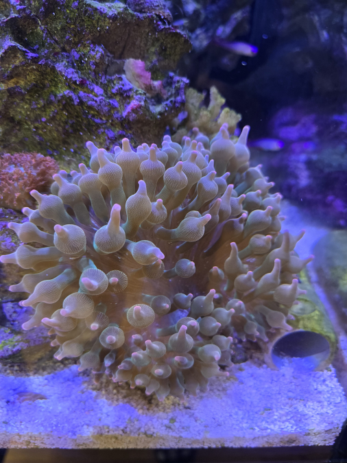 Mon entacmea quadricolor- ou anemone tetine - vient de faire ce week-end 2 rejetons que je met en vente. Cette variété fait vraiment des tetines (extrémité des tentacules gonflés). Le pied mère est sur la seconde photo. Elle se déplace peu et n'est pas très urticante