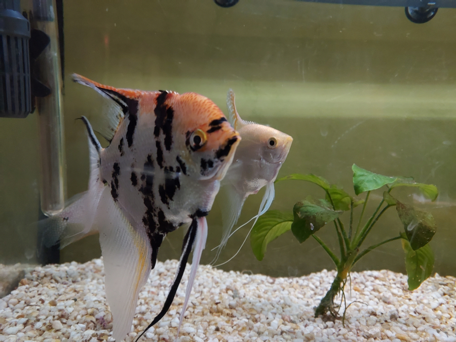 Bonjour, Je vends mes 3 scalaires taille adulte 15 cm environ. - 1 mâle tigré noir et blanc, doré - 1 femelle doré - 1 mâle doré J'ai d'autres poissons d'eau chaude si vous êtes intéressé.