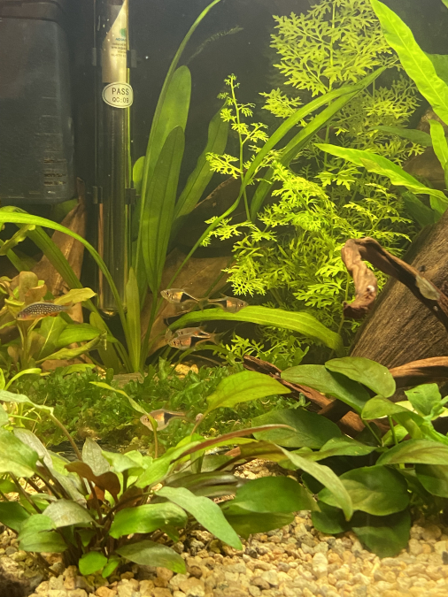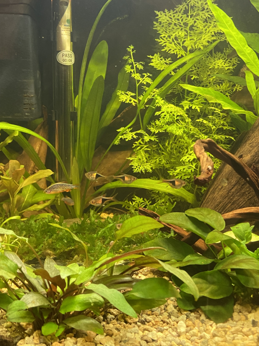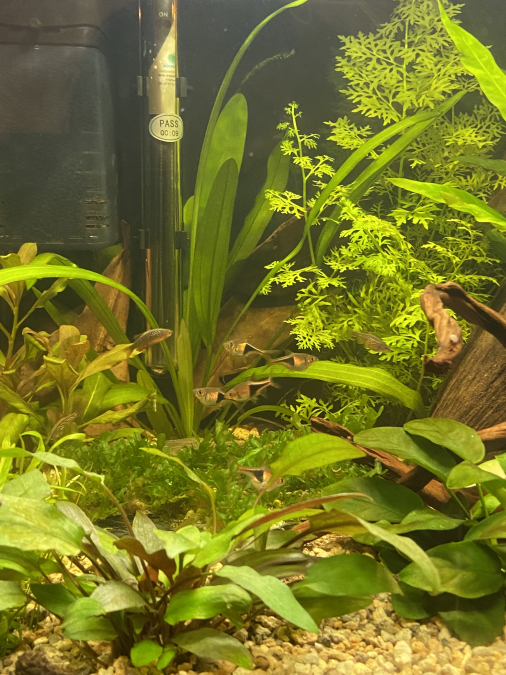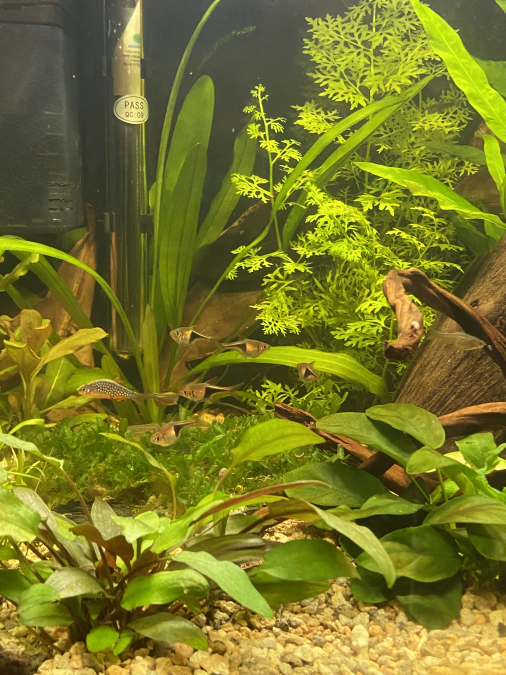 Je vends mes 5 Rasbora Arlequins achetaient chez un spécialiste il y a 2 semaines. Pensant qu’ils complèteraient bien le reste de mes populations, je n’arrive pas à me faire à leur physique. Ils sont en très bonne santé et ont vécu dans un bac bien entretenu, non pollué, sans surpopulation, et nourris comme il se doit. J’espère que qu’ils trouveront une nouvelle famille !