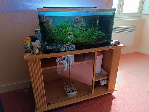 A vendre ensemble d'aquarium prêt à l'emploi avec plantes, décorations pour poissons d'eau douce. Je vends l'ensemble de mes aquariums pour cause de déménagement. Ils sont en parfait état sans rayure toujours bien entretenu, c'est l'idéal pour bien débuter dans l'aquariophilie. Description : Deux de 60 litres dont un avec meuble Un de 160 litres avec son meuble aquatlantis Avec tous les accessoires : 1 Pompes de filtration 2000litre /h avec Lampe UV 2 pompes 200l/h Chauffages pour chaque, lumière led sur chaque, éclairage progressif mode coucher de soleil sur le 160 litres. Plantes, roches, sable?. Distributeurs pour chaque aquarium, 1 pompe air, mallette de teste JBL, système co2 avec pièces de rechange, etc.. Très nombreux accessoires et matériel en plus (trop long pour détailler.) Je fais don des poissons et crevettes. Pour plus de photos merci de faire la demande A venir chercher sur place prévoir des gros bras. Vente du lot pour seulement 300 Euros