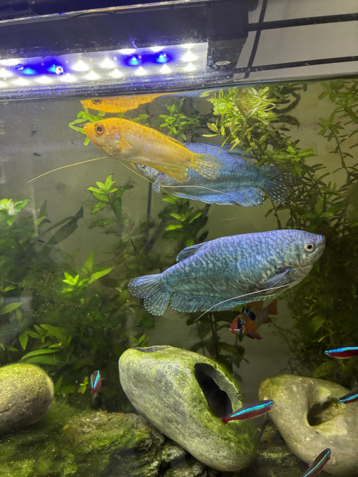 a vendre 3 gouramie 2 bleue et un jaune