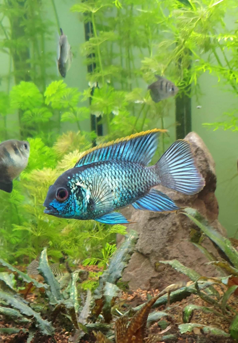 Bonjour à tous les passionnés d'aquariophilie, Je mets en vente une vingtaine de jeunes Acara bleu électrique (Andinoacara pulcher bleu électrique) issus d'une des portées de mes adultes. Ces magnifiques poissons, âgés de quelques mois, mesurent actuellement entre 2 et 3 cm. Espèce : Andinoacara pulcher (Acara bleu électrique) Taille moyenne : 12cm / Température : 18 - 26 °C / pH : 6 - 7 / GH : 5 - 15 / Volume minimum : 200L / Population minimum : 2 a 4 individus / Ces poissons sont en excellente santé et ont été élevés dans un environnement optimal avec des paramètres d'eau stables. Ils ne présentent pas encore des couleurs vives mais en grandissent ils aborderont une robe d'un bleu magnifique comme leurs parents. Ils ont un comportement actif et très intéressant a observer, caractéristiques de cette belle espèce. Livraison : Remise en main propre uniquement. Pas d'envoi postal pour le bien-être des poissons. Si vous êtes intéressé(e) ou si vous avez des questions supplémentaires, n'hésitez pas à me contacter par message privé. Je serai ravi de vous fournir plus d'informations et d'organiser un rendez-vous pour la vente. Merci et à bientôt !