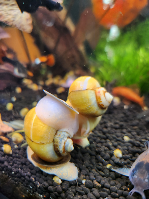 Ampullaire escargots d'eau douce taille 6 à 7cm Vendu par 5 pour 2€/pièce. Je donne les jeunes 1 à 2cm