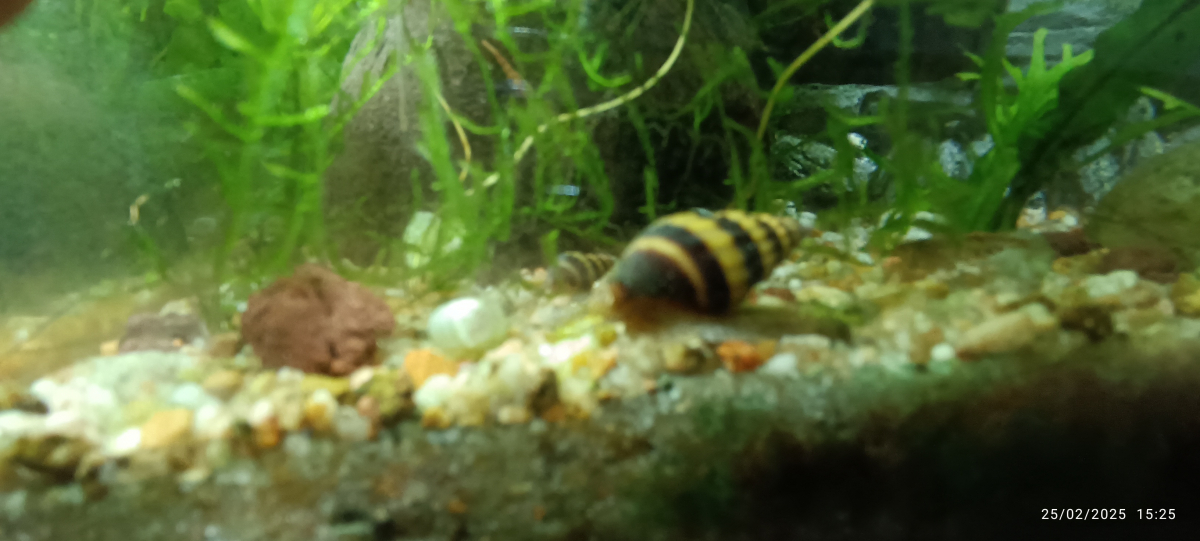 Petit escargot d'Asie conique bicolore, jaune à jaune pâle strié de noir. Commence à avoir du succès grâce à son utilité de régulateur d'escargot. Coquille épaisse. Rare représentant des Neogasteropodes vivant exclusivement en eau douce. Quand il "dort" il s'enfouit dans le gravier. pH: 7 - 8 GH: 8 - 15