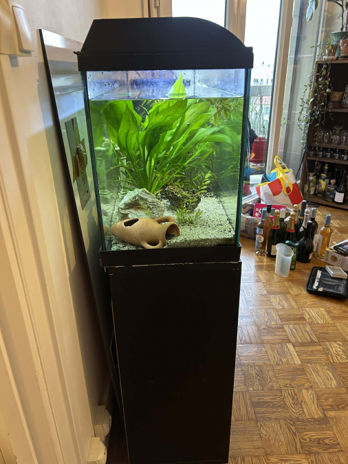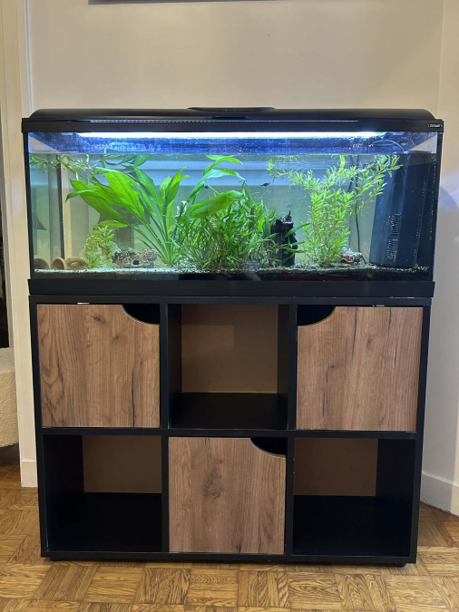 Je vends mon Aquarium 100 L, de la marque Zolux avec tout l’équipement nécessaire au bon fonctionnement : - Système de filtration - Pompe 100 L - Thermomètre - Chauffage - L’éclairage LED L’aquarium est fourni avec le meuble, mais peut aussi être vendu séparément. Il sera vendu vidé et nettoyé. Négociable dans la limite du raisonnable.