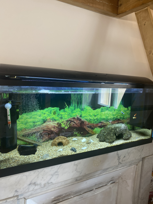 Bonjour, je vend un aquarium de 100L zoolux avec la pompe d’origine, le thermomètre, un chauffage dans la pompe, le led, l’essuie vitre,des produits pour effectuer un changement d’eau et un fond d’aquarium! Si vous avez des questions n’hésitez pas et tout est à vendre sur la photo aussi bien la décoration, le sterlisateur, les pompes et les poissons donc si vous êtes intéressez n’hésitez pas !