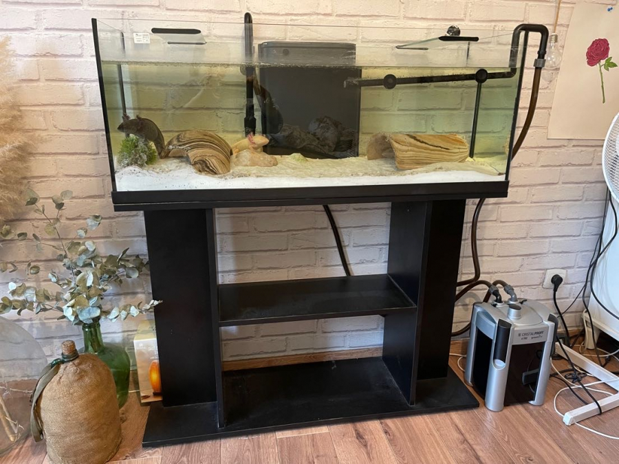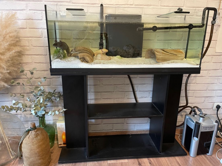 Vend aquarium de 120l en très bon état avec son meuble, son couvercle, un radiateur, un bulleur et environ 20kg de sable jbl sansibar blanc neige