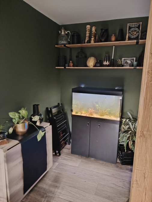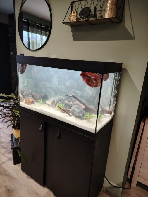 Bonjour, je vends aquarium EIHEM 126l quelques rayures sur les vitres. Secteur miremont 31190. Dimensions de l’aquarium : 80x35x45cm • Dimensions de l’aquarium + meuble : 81x36x119cm Avec pompe externe cristal pro Jbl puissance 250L/h, chauffage thermocontrol 100w EHEIM et deux rampes led réglables (jour nuit variante des couleur) et timer intégré. Sable sensibar JBL extra fin blanc & beige environ 20kg. Population : 1 couple Ramirezi Black devil, 8 coridoras black Venezuela adultes, 15 néons noir, une femelle ancistrus blanc aux yeux bleu. 2 racines. Je donne avec la nourriture et feuille catapa, accessoire pour l'entretien des plantes Jbl ciseau pince etc... Malette Kit de test d'eau, ouat, angrais, etc...prix 150e