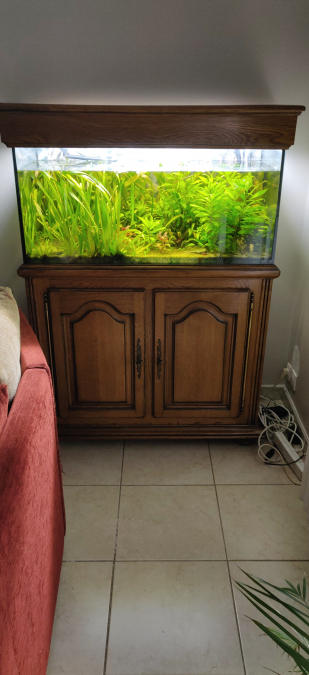 Vends un aquarium plus meuble et pompe cristal pro e 902 récente avec plantes et poisson
