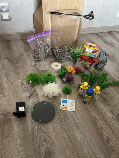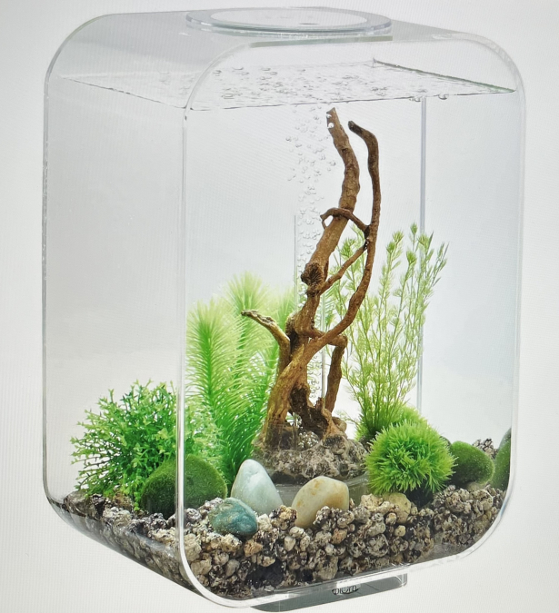 Vends aquarium BIORB de 15 litres entièrement transparent très bon état. Très design avec coins arrondis (voir photos). Vendu complet avec : - Couvercle de fermeture avec éclairage Led intégré neuf. - Livré avec gravier céramique au fond conçu pour la filtration biologique + 1 sac d’avance. - 14 décorations (plantes et rocher central gris). - 1 épuisette à poisson. - Cartouche filtrante avec éponge de filtration neuve. - Buse d’oxygénation de l’eau - La pierre de diffusion qui règle le flux des bulles d’air neuve. - 5 produits pour entretien de l’eau et charbon pour le filtre. Dimensions : Largeur : 29cm Profondeur : 19,3 cm Hauteur : 40,7 cm Prix de l’ensemble : 170€