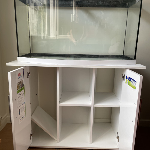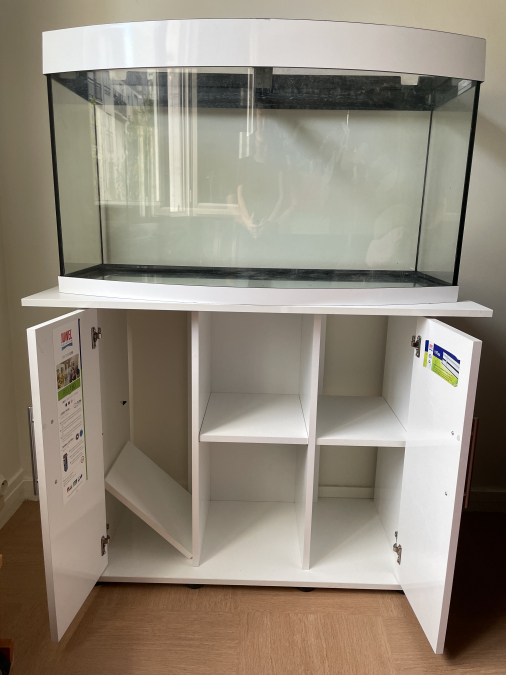 Bonjour, je vends mon aquarium pour financer mes études à l’étranger. Les plantes et animaux ont pu être récupérés. Il me reste cet aquarium de marque Juwel que je vends avec le meuble d’origine et le matériel restants. Les caractéristique du bac sont sur la photo de sticker. Les étagères peuvent être retirées, 2 led faisant toute la longueur de l’aquarium sont vendues avec. La pompe n’est plus en ma possessions et le chauffage d’origine a été remplacé par un « protemp s200 » à température réglable allant de 20 à 34 degré Celsius et fait 38cm de hauteur. Avec ceci, un bulleur « Tetra aps 300 » avec un tuyau de 2m75cm. Et un distributeur de nourriture automatique « petacc ». Les vitres de l’aquarium possèdent de fines rayures causées par les méthodes de nettoyage employées, elles ne sont cependant plus visibles une fois rempli d’eau, comme tout les aquariums. Le prix peut sembler élevé, mais les 3 accessoires seuls valent plus de 80 euros. N’hésitez pas à me contacter si vous êtes intéressé ! Clément 19 ans.