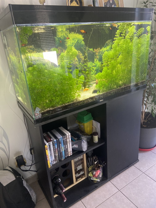 Bonjour Nous souhaitons arrêter l’aquariophilie c’est pour cela que nous nous séparons de notre bac en globalité Bac INWA + meuble ( petit accros dans un coin rien de méchant) Pompe externe CRISTALPROFI e902 Green Line JBL Pompe interne d’origine 1 bulleur INWA ( plusieurs embouts) Pompe aspirante manuelle Bac entièrement vider et nettoyé