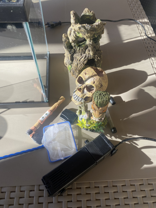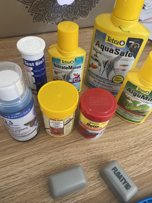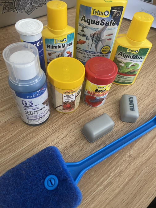 À vendre : aquarium de 20L avec équipements et produits Avec : - produit aquasafe 250ml -produit nitrateminus 100ml -produit algumin 100ml -languette de test pour eau -produit anti points blancs 100ml -nourriture pour Betta et poissons rouges -2 objets pour nettoyer les vitres -ciano filtre CF20 -objets déco décoration (voir photo) Je n’ai plus le carton d’origine À récupérer sur place ou sur Pamiers Prix : 50€