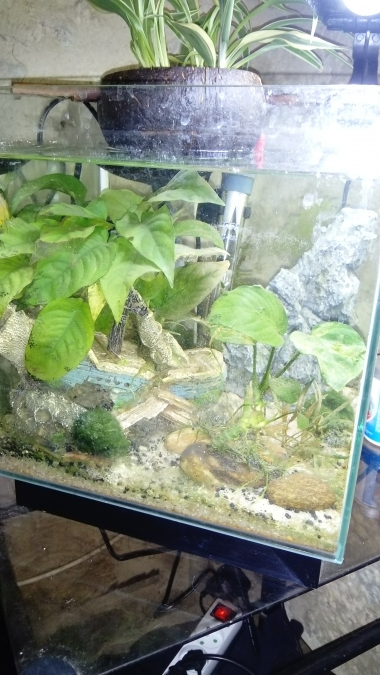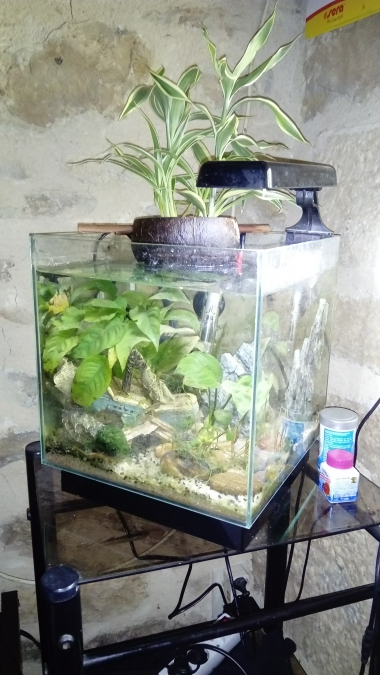 Bonjour, suite à la perte de mon combattant, je vend son aquarium tout équipé. L'aquarium a une capacité de 20L très bien entretenu, il est vendu avec : - chauffage réglable - une filtration naturel neuve ( pompe de brassage + plantes semi aquatique ) valeur 40€ - thermomètre - bateau - roche - pierre (galets) - Anubias (s'accroche sur des décorations, pas besoin de la planter) - 3 boules d'algue (permet d'attraper les saletés et de les retenir) - miroir pour combattant (si besoin) - lampe d'aquarium ( led ) - substrat (sable blanc + quartz noir + terreau aquarium) - nourriture top qualité Prix négociable