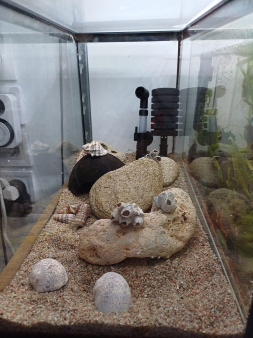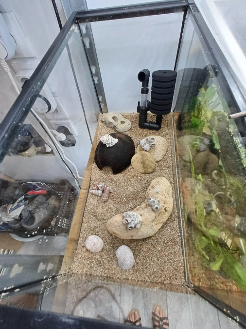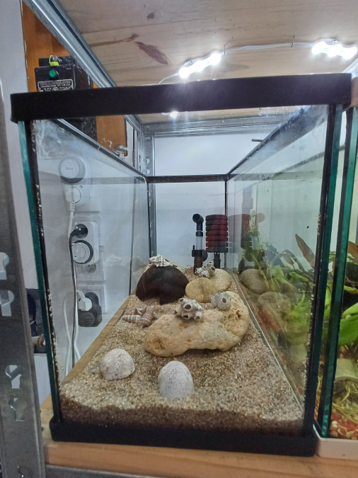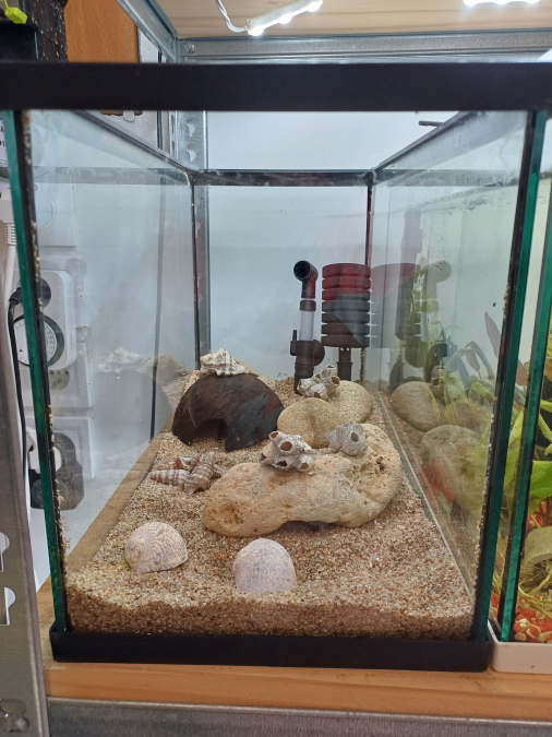 Vend aquarium de 20L équipé d'un exhausteur neuf avec sol en sable de loire, chauffage (non visible, photo à venir), couvercle en plexiglass, décorations galets beige rosé, coquillages et noix de coco. Ajout de plantes possible, prix sur demande. Parfait état assimilé à neuf car peu tourné, joints impeccables. Idéal pour élevage de crevettes green jade, super green jade, rili green, chocolats, blacks, rili carbon, blues, reds. Prevoir pompe à air non fournie. Prix : 50 euros, négociable si plusieurs bacs achetés voir mes autres annonces A récupérer sur Toulouges (66) ou Vias (34) ou au long de l'A9 (péage) entre Perpignan et Sète selon déplacements.