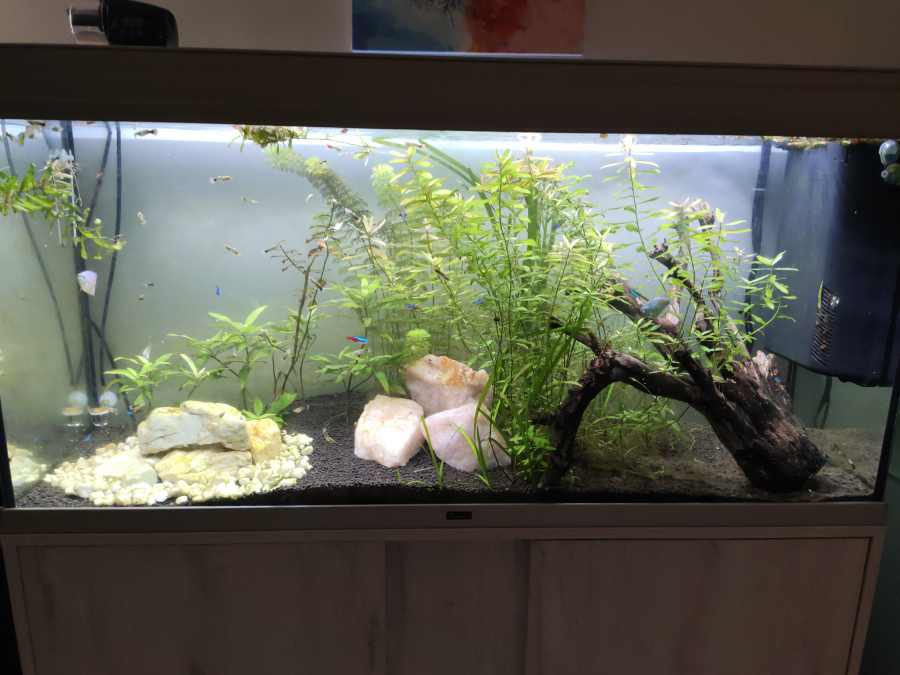 Vend Aquarium 220l + meuble bois clair. Comporte : - Système de filtration Biobox 2 - Système CO2 JBL u 504 - Distributeur automatique de nourriture SuperFish - LED - Chauffage - Thermomètre - Traitement eau + plantes utilisés actuellement - Décoration intérieur + plantes Les espèces : - 1 couple de Colisa (communément appelé Gourami Nain) - 10 Néon XL - 30 guppys ado - 1 guppys adulte femelle - 4 escargot Neritina Zébré - 1 corydoras. - Plusieurs Physe. Aquarium en fonction depuis Novembre 2020. N'hésitez pas à prendre contact.