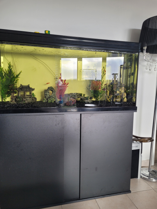 Vends mon aquarium 120x40x60 avec son meuble 120x40x81 avec une pompe extérieur jbl 1502 greenline ainsi que les décorations et les poissons si possible pour cause de déménagement. 400 euros.