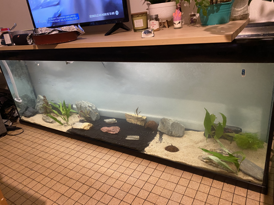 Je met en vente mon aquarium ! Il fait 2m de long 750L si je me trompe pas possible de le vendre avec les poissons ! Ça reste un énorme bac donc il faut un budget à prévoir ! Curieux s’abstenir ! L’aquarium ce trouve à samois sur Seine 77920 a 5min de Fontainebleau il faudra venir le chercher sur place avec des personnes costaud il est vraiment très lourd ! Sera vendu avec chauffage et pompe j’utilise une pompe de piscine ! Comme poisson il y a actuellement : 1 discus 7/8 scalaire 2 labeo 2 ancistrus 1 pleco Plein de Sumatra, tetra 2 balancio Des néons 2 silure de verre 3 crevette japonica 5 corydoras J’en oublie sûrement…