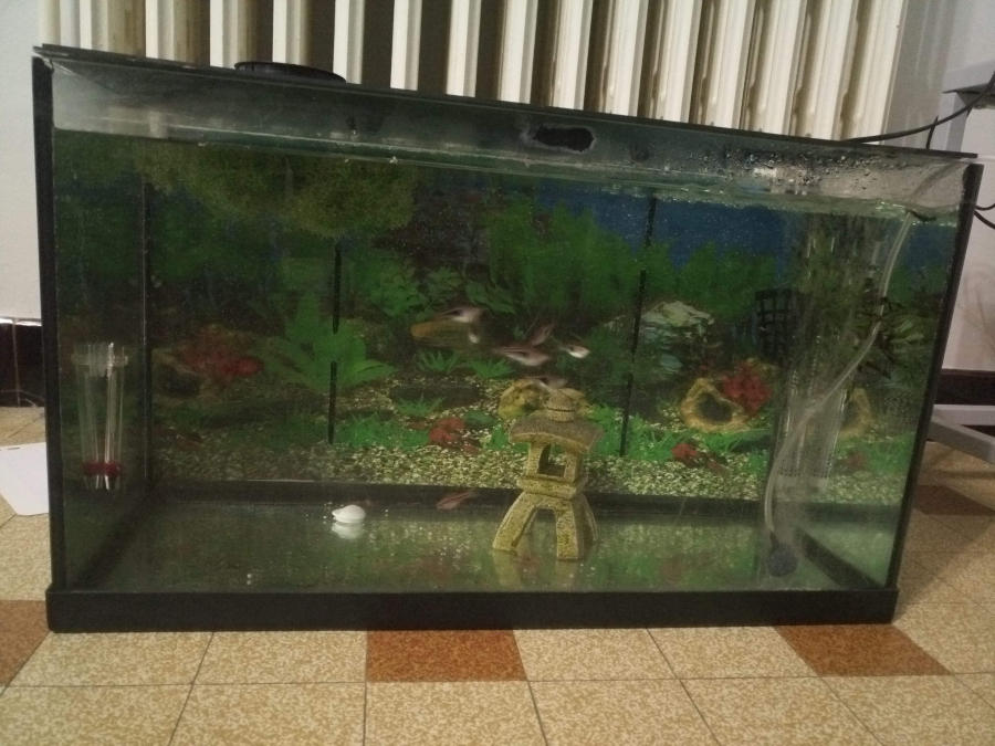 Bonjour Je vends mon aquarium de 54 litres, actuellement en eau. Vendu avec éclairage, pompe à air, décoration, filtre interne et mousse filtrante. sur Toulon ou Gap suivant planning professionnel