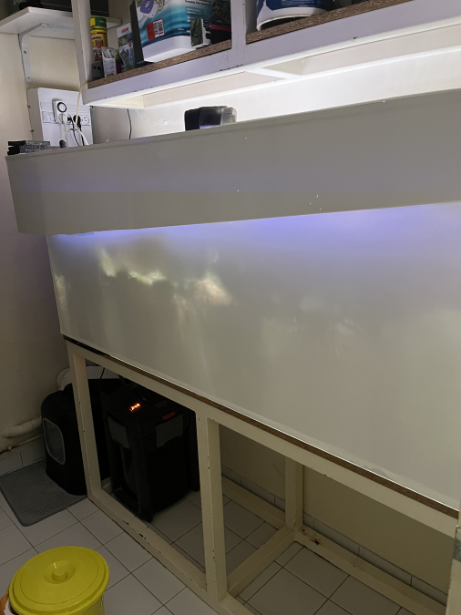 Vends cuve plexiglass de 600 litres avec support en fer Dimensions : 170 x 70 (h) x50 la face avant présente quelques rayures