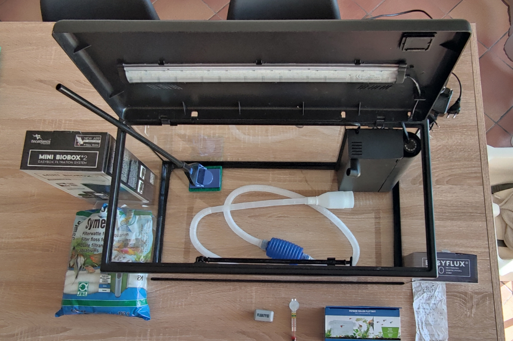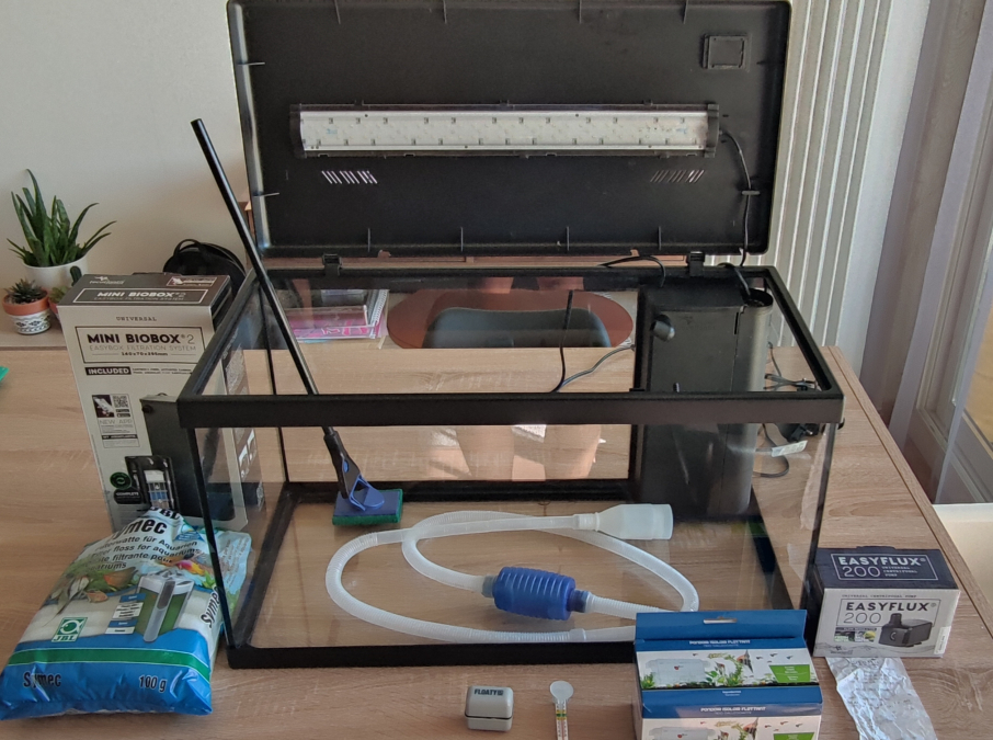 Je vends aquarium avec système de pompes& chauffage. Vendu avec une pompe manuelle pratique pour vider l'eau pour le nettoyage,un thermomètre,une brosse pour le nettoyage des vitres + le système d'aimant,un pondoir et une pompe de rechange neuve.