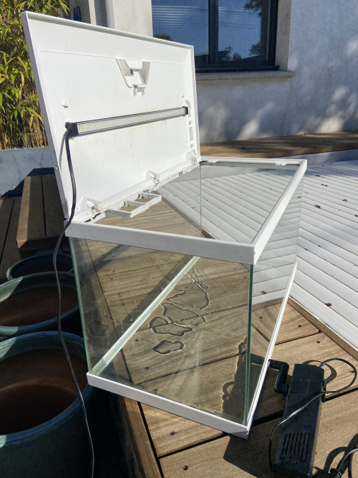 Bonjour je vends un aquarium de 60 l avec pompe et néon il manque une ventouse sur la pompe il y a une partie fissurée au niveau du rejet, mais n’empêche rien au fonctionnement de la pompe. L’aquarium est en très bon état, je le vends car je suis passé sur un plus grand, n’hésitez pas à m’envoyer un message si vous êtes intéressés !