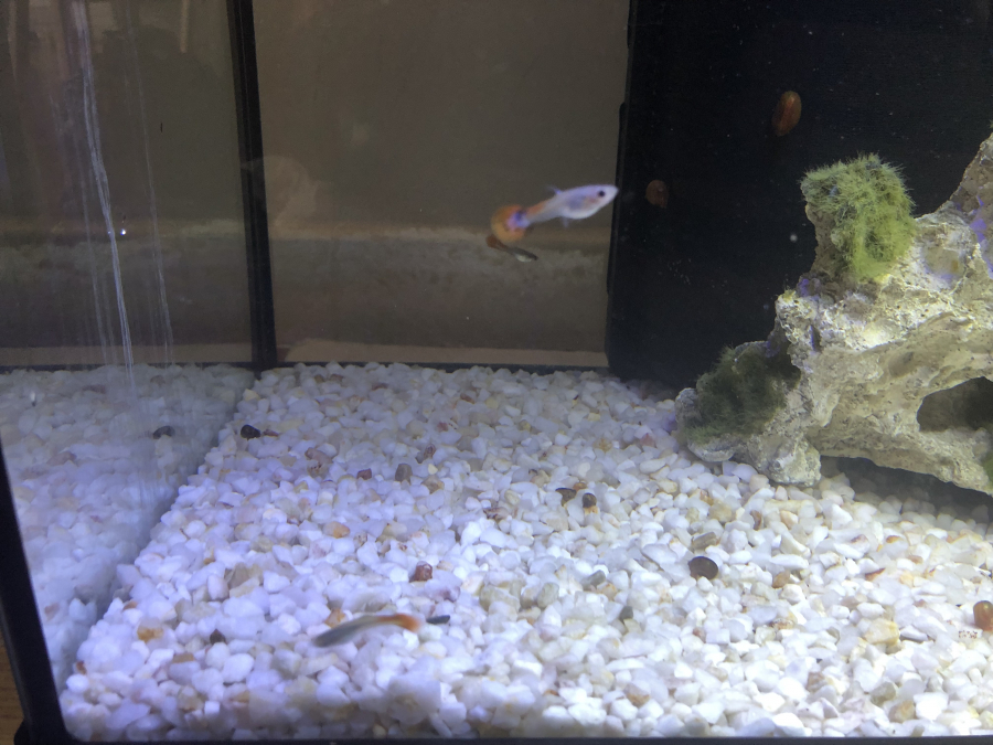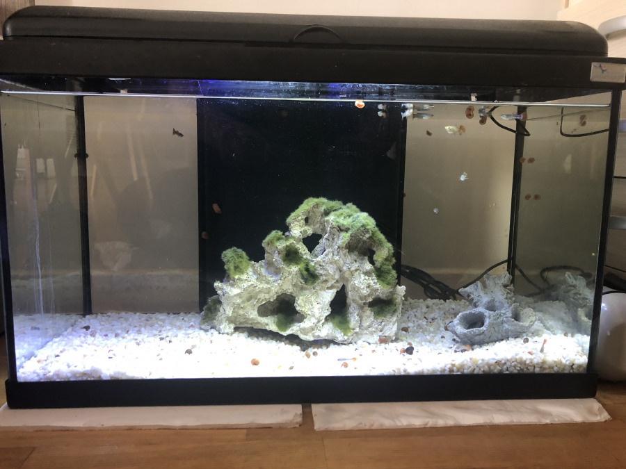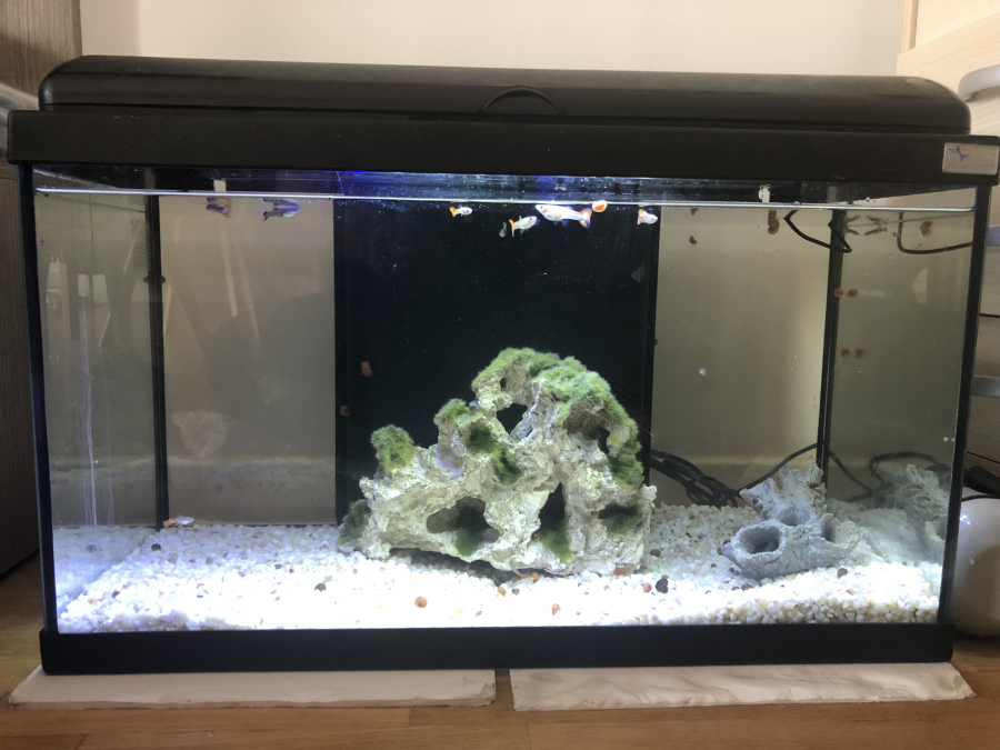 Bonjour Je vend un aquarium de 70 l en très bon état 60 cm de long Complet et déjà en eau Lumière chauffage filtre et pompe Je donne aussi gratuitement : Décoration et gravier Poisson guppy colorées Prix 60 euro Cdt