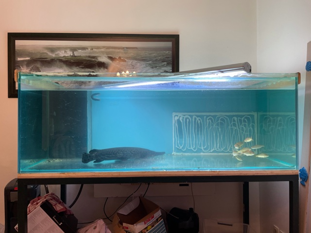 Vend aquarium 800L (170x70x70) pour cause de déménagement. Il a une petite fissure en bas a droite a l'arrière c'est pour cela que l'on voit la vitre de renforcement et le silicone . Cela peut néanmoins être cacher par un décors en pierre ou un faux décors.