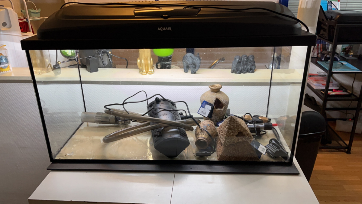 A vendre aquarium aquael de 80l avec pompe aspirateur tapis décoration égyptienne chauffage (le bout en verre est casser mais fonctionne parfaitement) tout le matos est en parfait état à négocier dans la limite du raisonnable