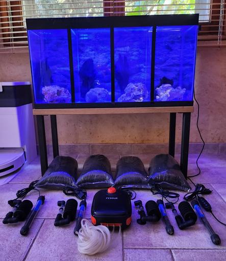 Bonjour, Suite passage en récifal, je me sépare de mon aquarium a crevettes (Fait maison et avec soin ....) Un bac de 80 litres modifié en 4 compartiments pour élevage de crevettes ou simplement pour le plaisir . Personnellement j'avais un des 4 bacs pour chaque couleur de crevette (Jaunes Noires Bleus et Rouge) Cela évite les croisements et éviter d'avoir des crevettes ttes grise Il est complet pour utilisation immédiate 1 banc aux dimensions exactes du bac 4 chauffages 4 filtres éponge avec sa pompe a air 1 Rampe LED Aquarium avec la Fonction Minuterie, Éclairage Réglables à Spectre Complet (Le total de mes achats pour ce bac a été de 400 € env) Si récupéré sur place j'offre pierres, racines, Sol technique Si livraison il faudra ajouter le prix du transport Hugues ( 34130 Mauguio)