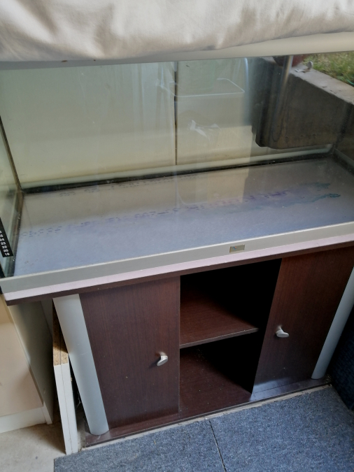 Aquarium de 200 L vendu avec son meuble de couleur marron en très bon état, joints peut être à refaire (aquarium plus en service depuis 5 ans)