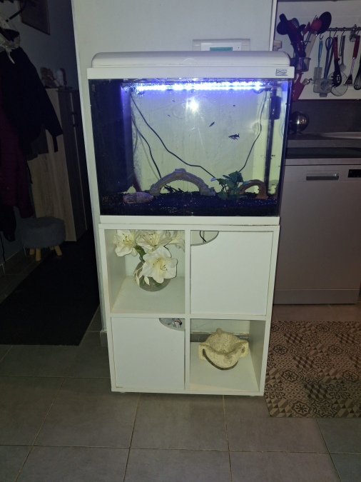 Vends AQUARIUM AQUADISIO 60L avec meuble, plantes et accessoires