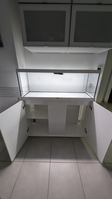 Aquarium Aquatlantis en très bon état, encore en eau jusqu’à fin janvier 2026. Dimensions : 120 x 40 x 45 cm (environ 216 L). Vendu complet avec : Éclairage Easy LED Control permettant la programmation des horaires ainsi que la simulation du lever et du coucher du soleil Meuble Aquatlantis assorti avec rangements pour le matériel Filtration externe JBL e1502 (plus de 3 ans), fonctionne parfaitement L’aquarium possède une vitre de fond légèrement teintée, apportant un rendu visuel plus esthétique. Pas de livraison. Deux personnes suffisent pour porter l’aquarium, trois pour le meuble si nécessaire. À noter : le renfort central a été recollé légèrement plus bas que l’emplacement d’origine, l’aquarium étant encore en eau avec les poissons lors de l’intervention. L’ensemble reste solide et il est possible de le recoller à la hauteur souhaitée. Aquarium idéal pour un projet déjà bien équipé, prêt à être remis en service rapidement.