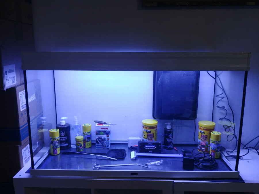Aquarium en parfait état 102.60.39cm soit 200L Vendu avec tous ces accessoires : thermomètre.filtre.distributeur automatique nourriture.nutriments. nourriture.lave vitre.led.programmateur lumière à distance.raclette.epuisette.ciseaux.pinces... manuelsutilisation. A recuperer sur place paris 19eme.belle affaire.